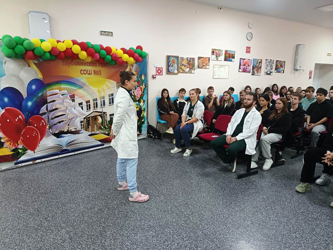 15.10.2025г. состоялась встреча с учащимися Глубокинской казачьей школы №1 с молодыми специалистами ГБУ РО «ЦРБ» в Каменском районе в рамках профориентации.